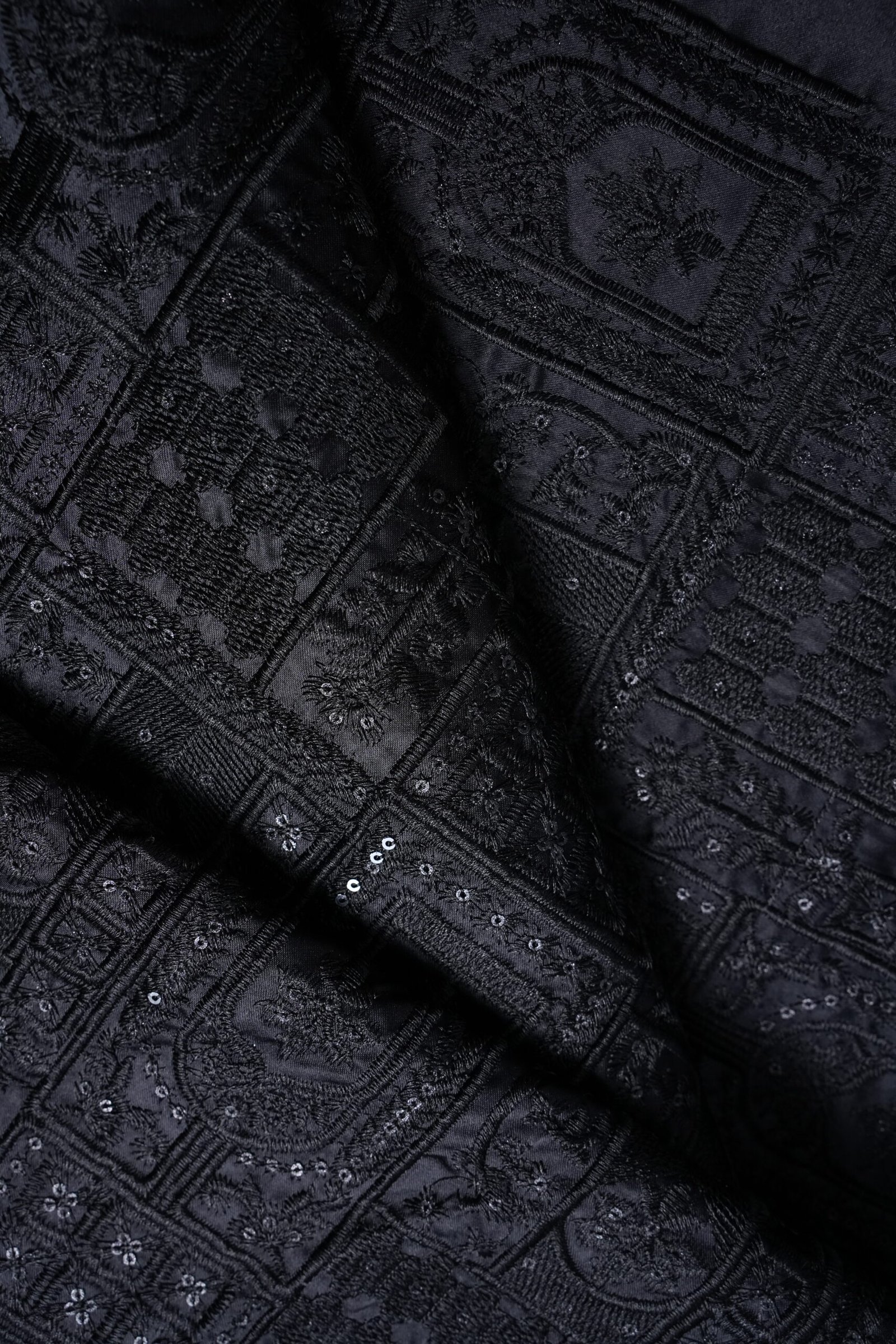 Black Embrioded Mahsoori fabric with Sequence